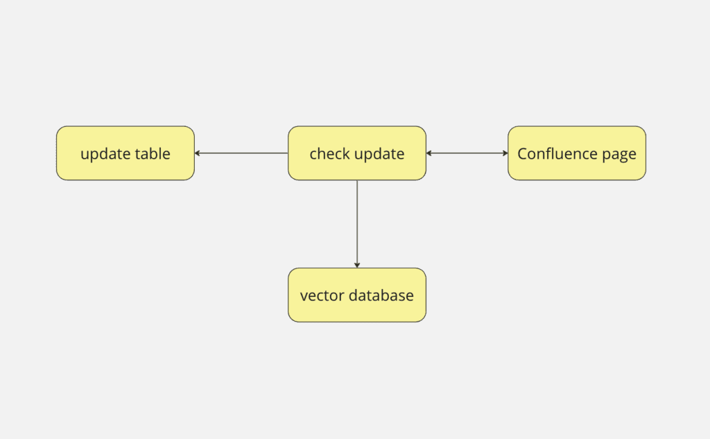 To solve this problem we use a different strategy to update our knowledge base, which is checking which pages were actually updated. Through the Confluence API, we query the latest updated pages. Based on the information from this list we have two methods that can be used to update the information.