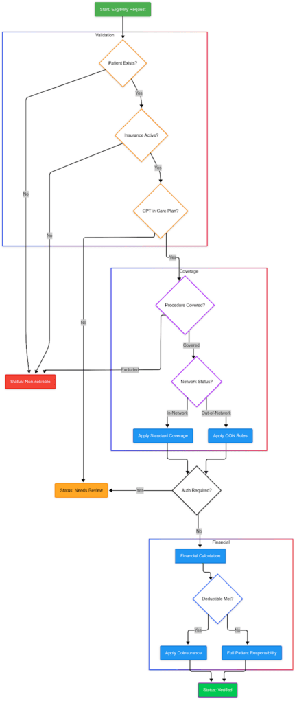 Our solution consists of three main components, each designed to handle specific aspects of the eligibility verification process: