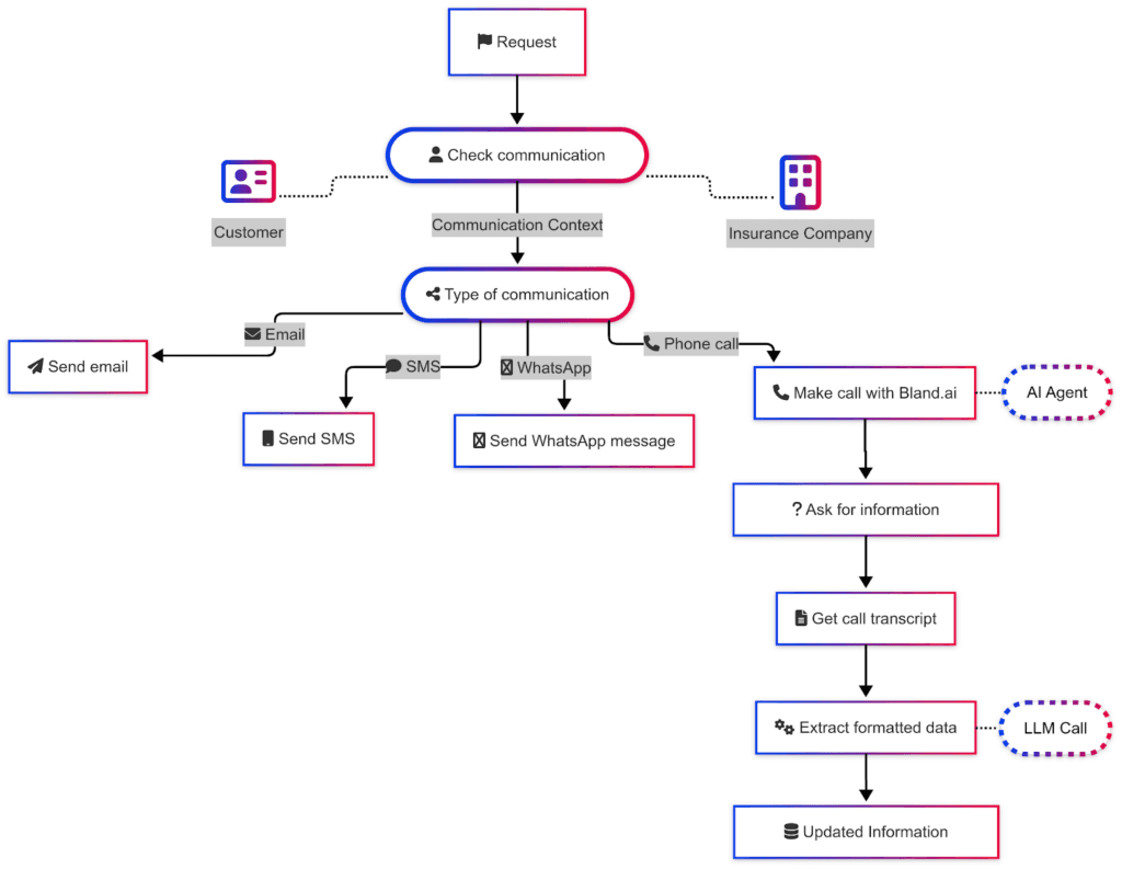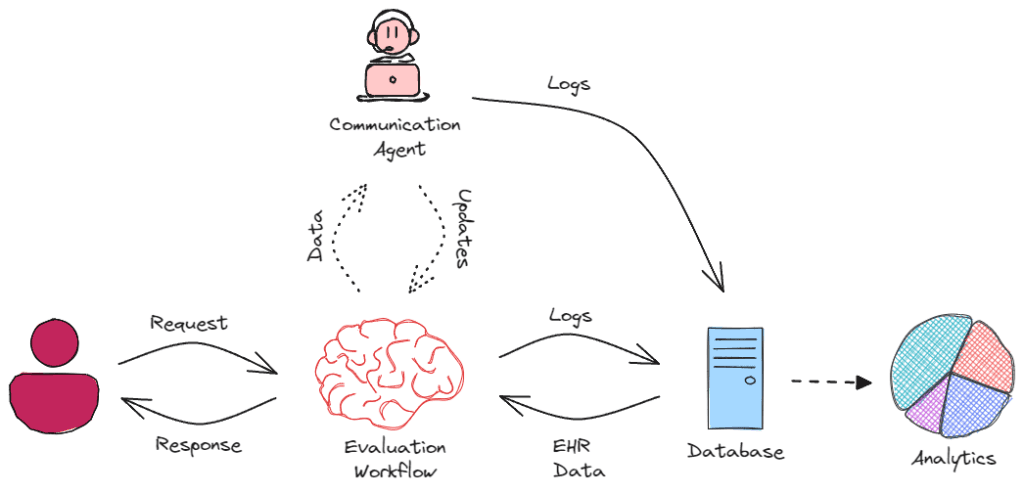 Each component follows our established principles: using agents for flexible communication and workflows for structured processes. The system logs all interactions and decisions, enabling continuous improvement through analytics.