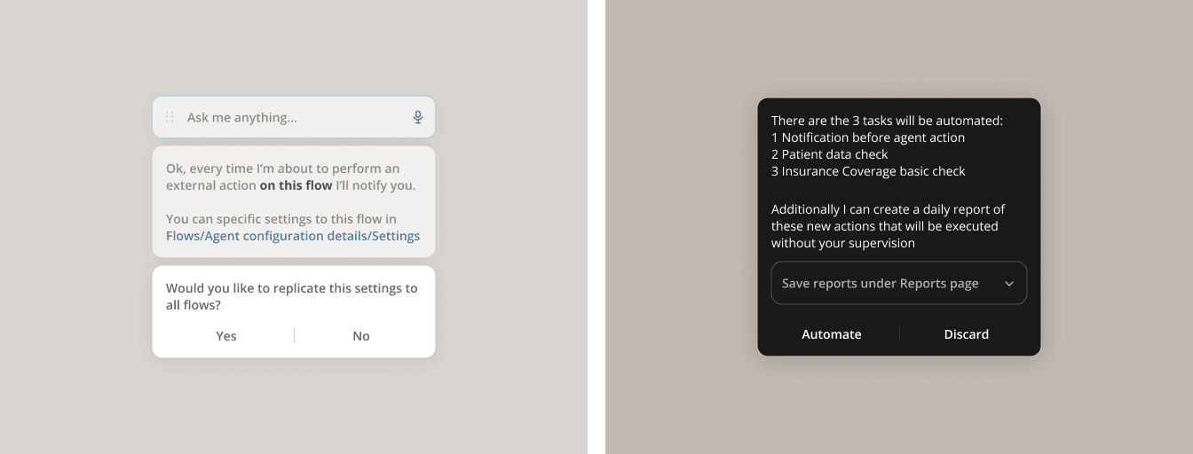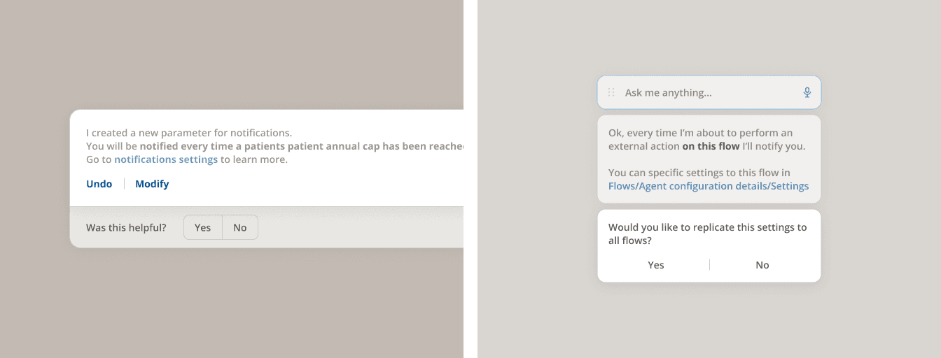 We also added the option to Undo and Modify actions performed by the agent to reduce interpretation errors. This feature enhances user control, ensuring that even as the system automates tasks, users remain aware of how to manage and adjust these automations independently.