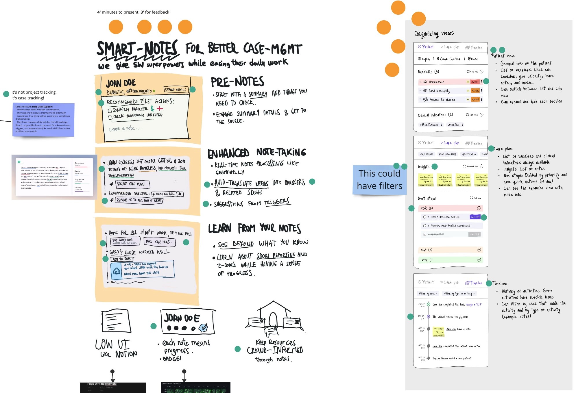 Our process began with a custom Design Sprint for AI-driven products. We focused on understanding the daily realities of our main users — Social Workers and Care Managers — across outpatient, inpatient, emergency, and chronic care settings.