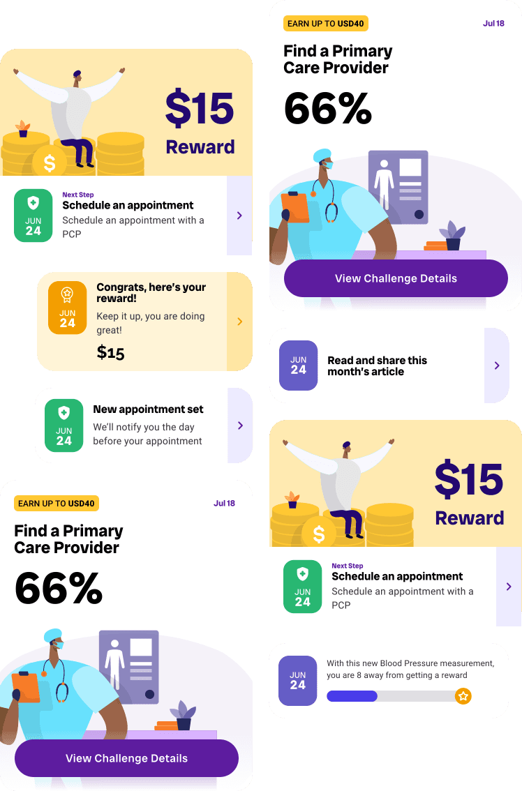 Five UX/UI iterations refined how progress and rewards were shown, ensuring the experience felt intuitive and empowering.