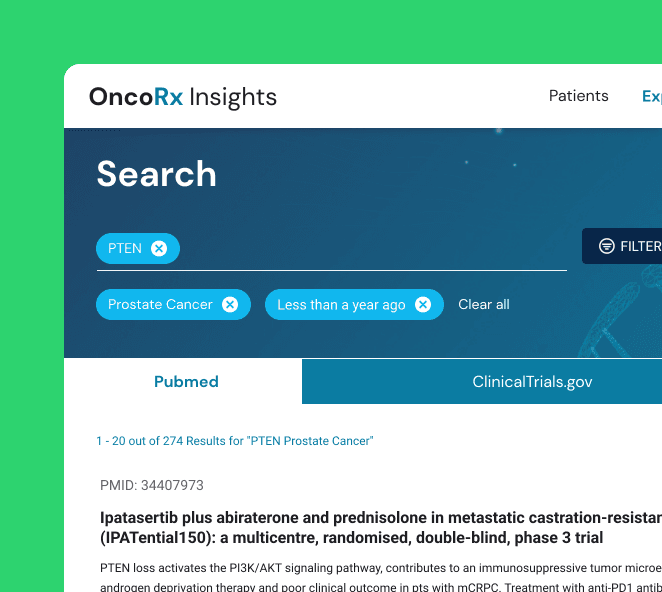 Advanced search and filters by cancer type, keywords, and timeframes