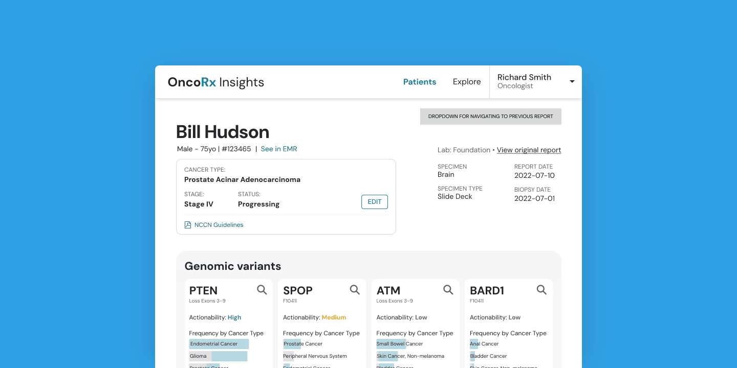 Oncologists were forced to jump between multiple sources, manually interpret complex reports, and spend valuable time researching instead of focusing on patient care.