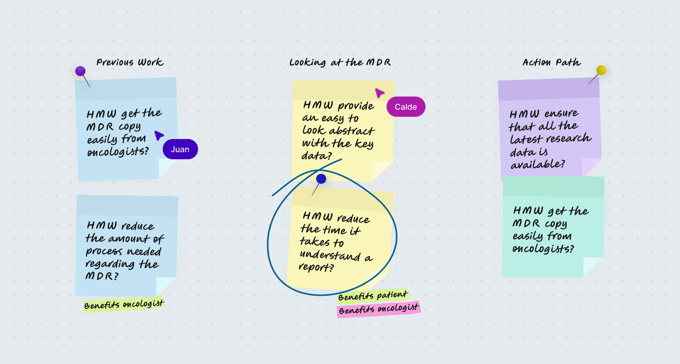 Interviewed oncologists and mapped real-world workflows to identify where technology could meaningfully support clinical decisions.